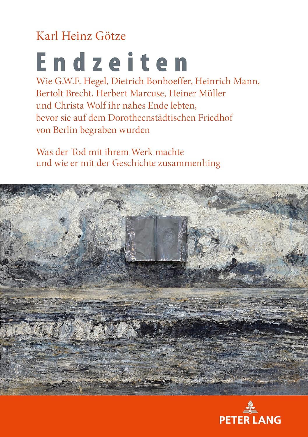 Endzeiten. Wie G.W.F. Hegel, Dietrich Bonhoeffer, Heinrich Mann, Bertolt Brecht, Herbert Marcuse, Heiner Müller und Christa Wolf ihr nahes Ende lebten, bevor sie auf dem Dorotheenstädtischen Friedhof von Berlin begraben wurden. Was der Tod mit ihrem Werk machte und wie er mit der Geschichte zusammenhing, Lausanne und Berlin u.a., Peter Lang, 2023, 291 S. |